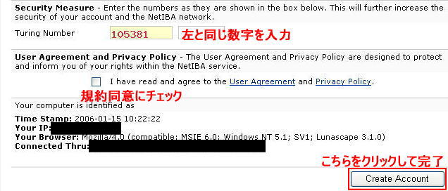 2週間ぐらいでNetIBAから手紙が届きますので手紙内のコードを